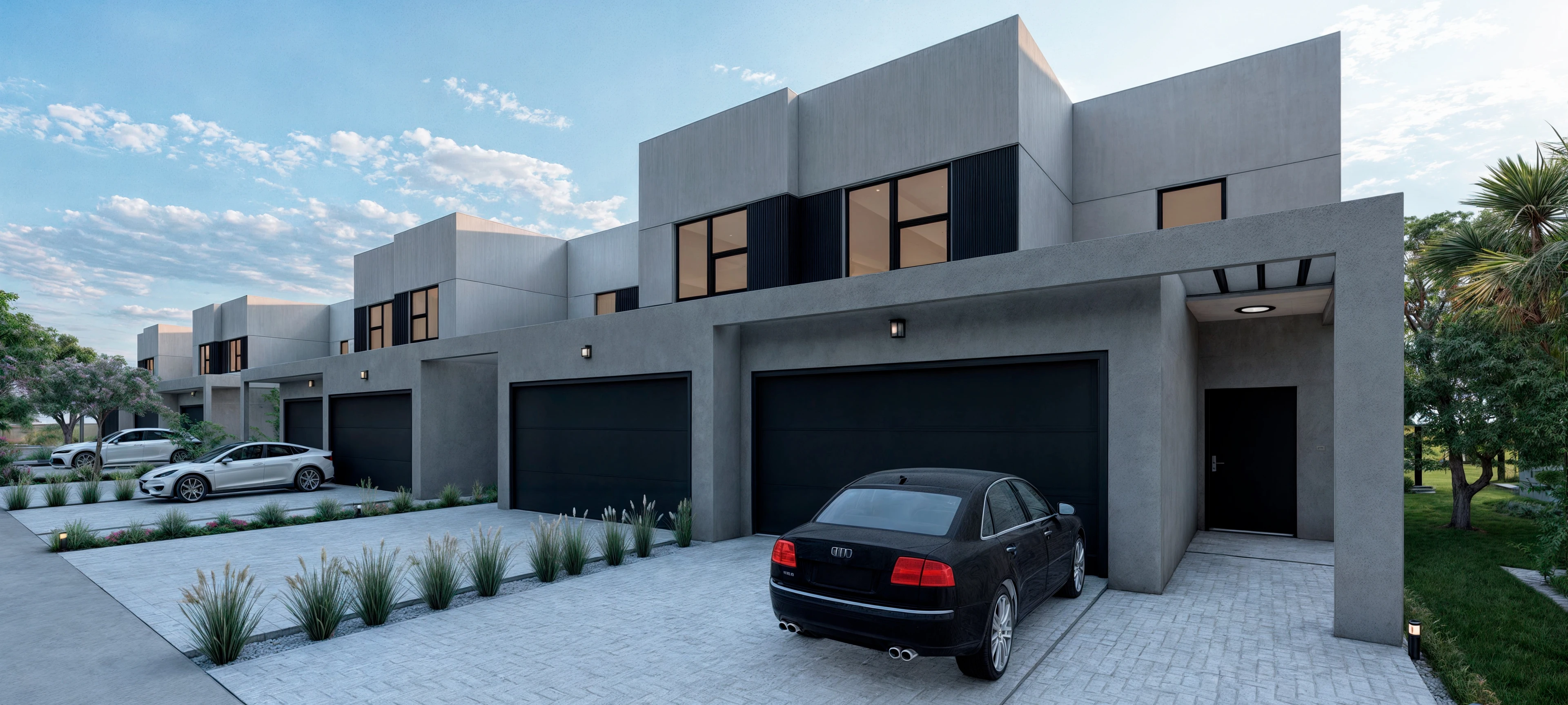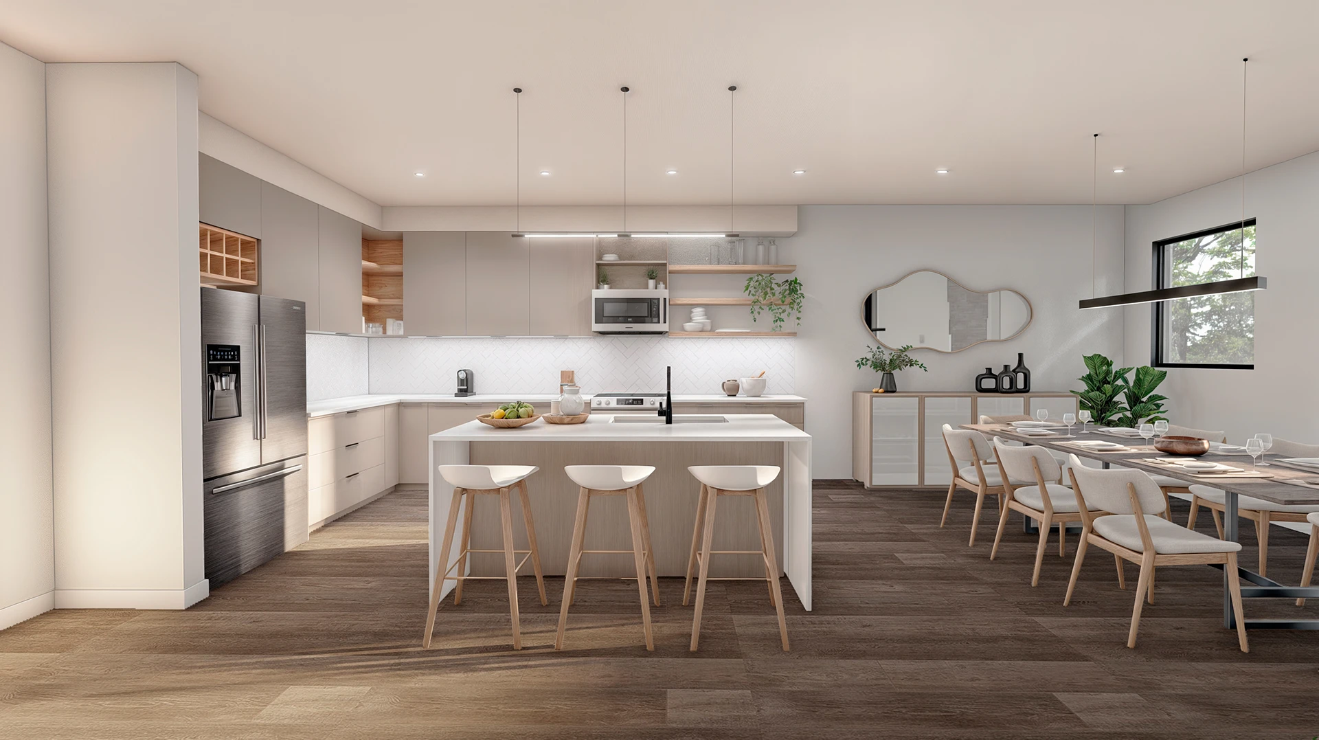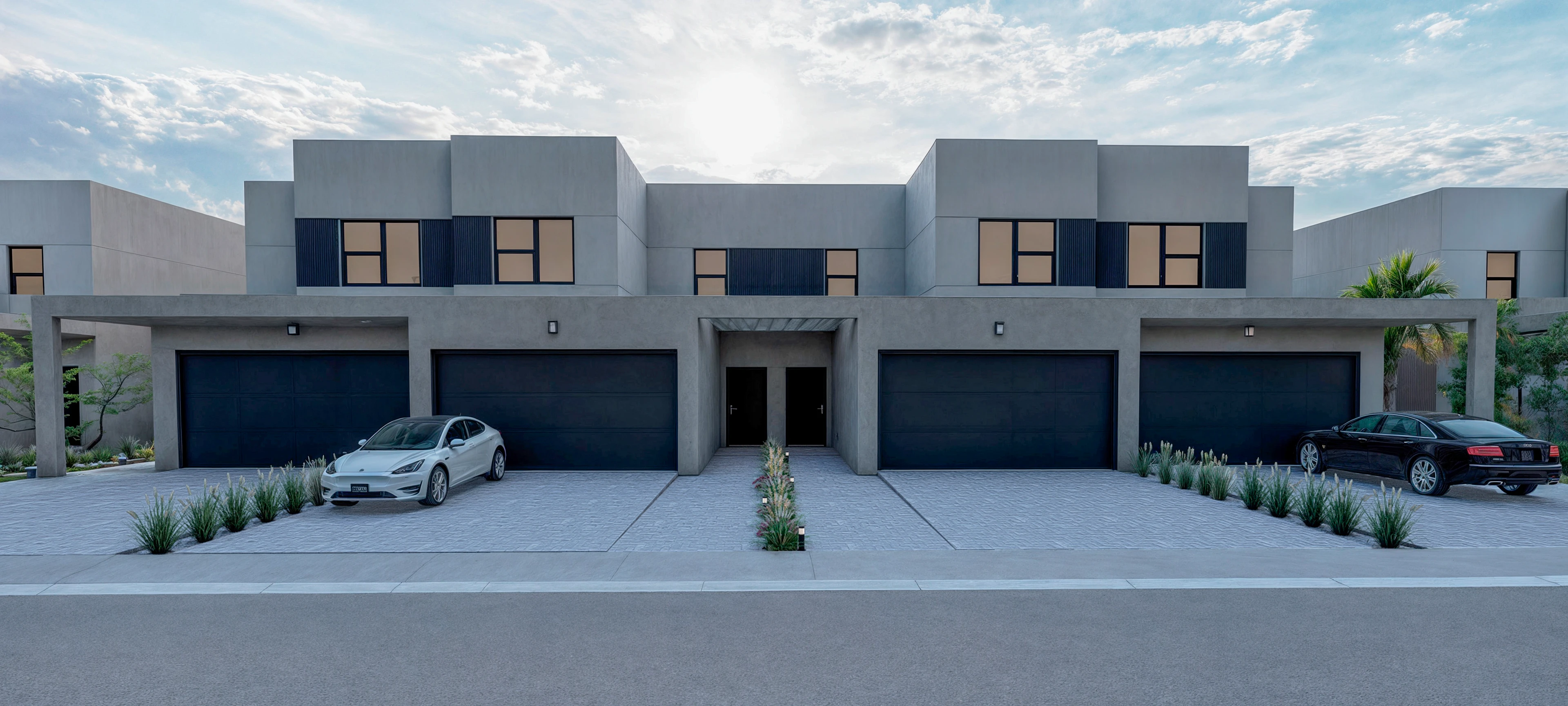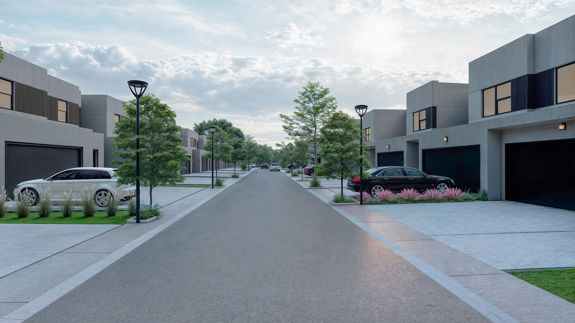 Design interiors with high-quality materials, including quartz countertops and stainless steel appliances. Ensure a balance of aesthetics and functionality throughout the homes.