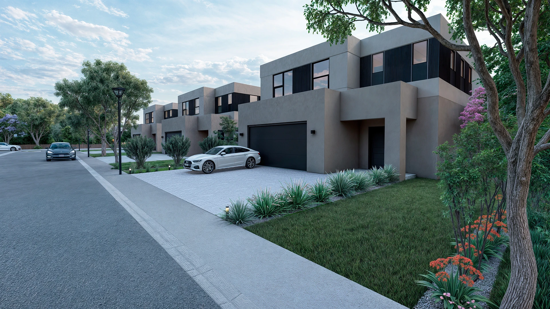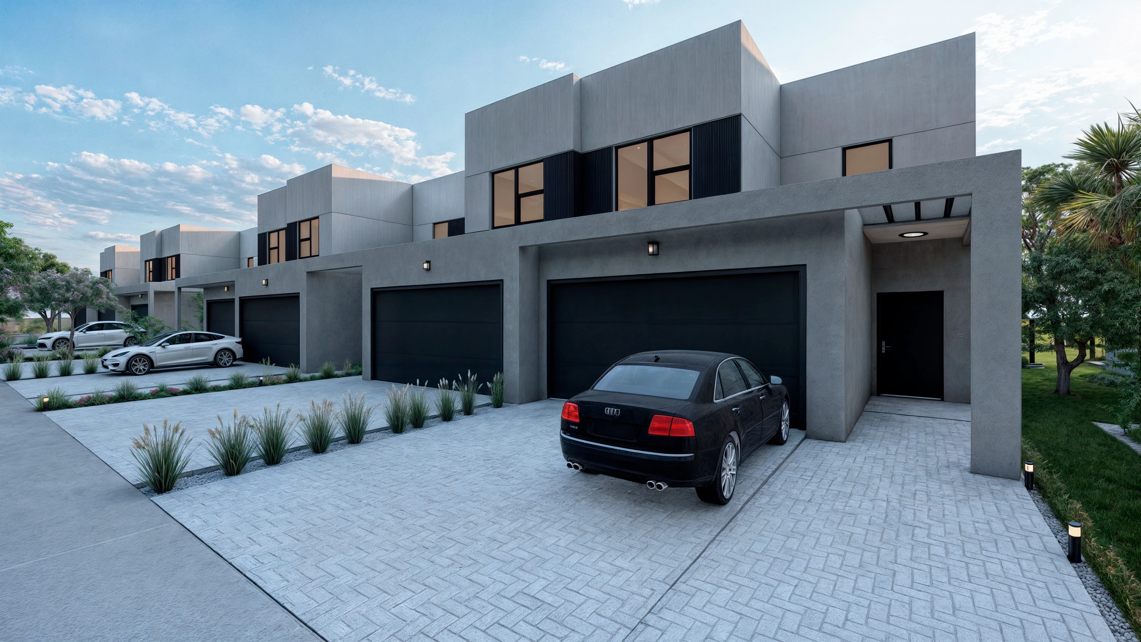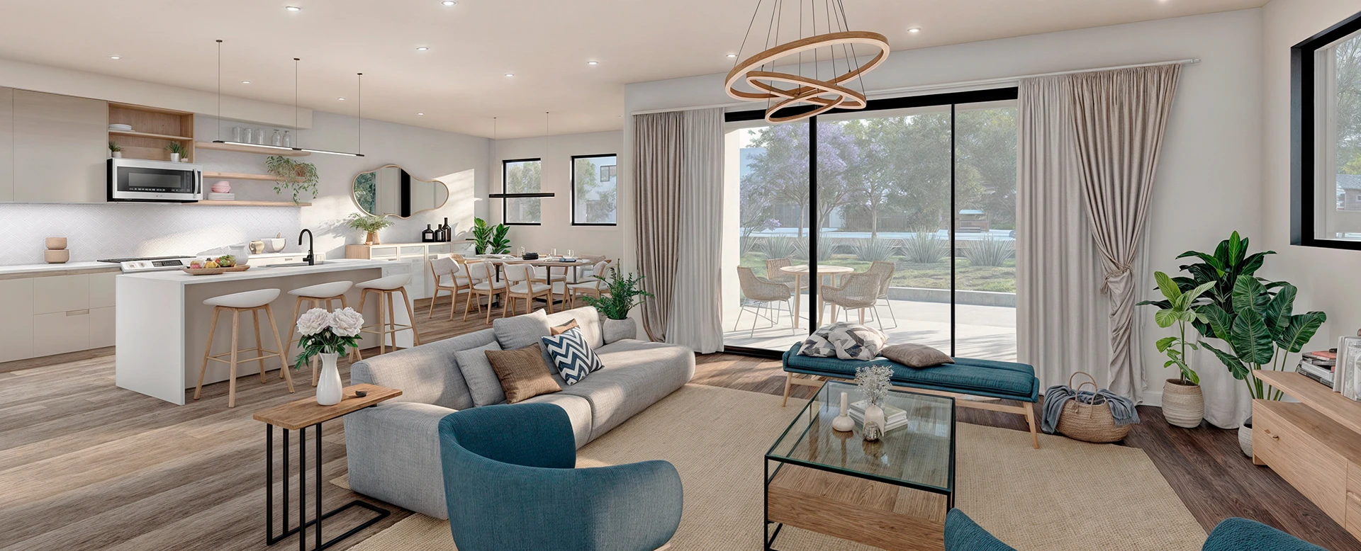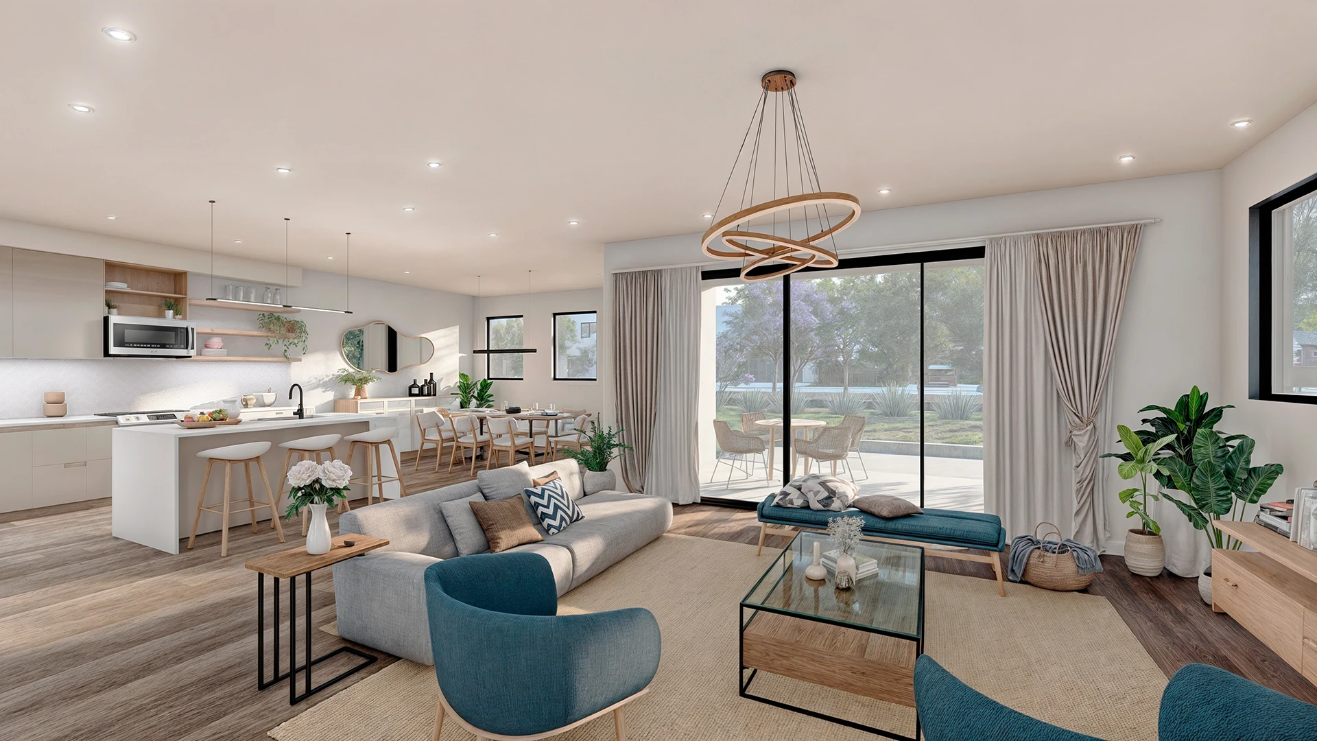 Design interiors with high-quality materials, including quartz countertops and stainless steel appliances. Ensure a balance of aesthetics and functionality throughout the homes.